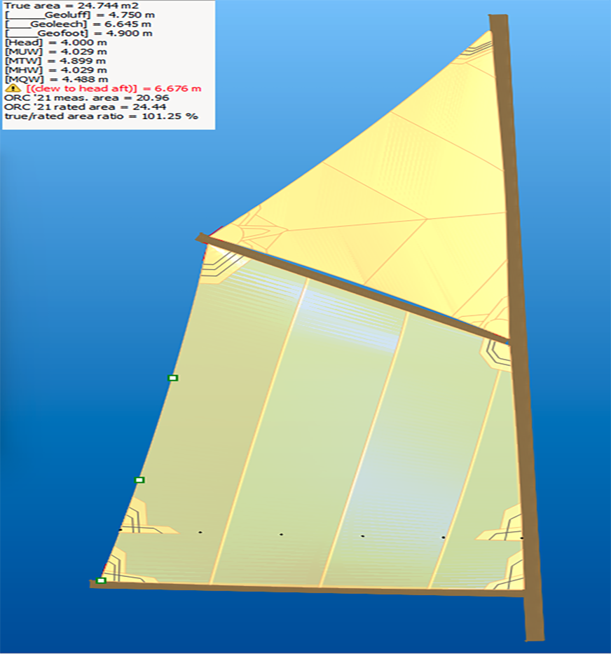 Cuciture: finiture fatte a mano, con rinforzi tipici delle vele d’epoca.